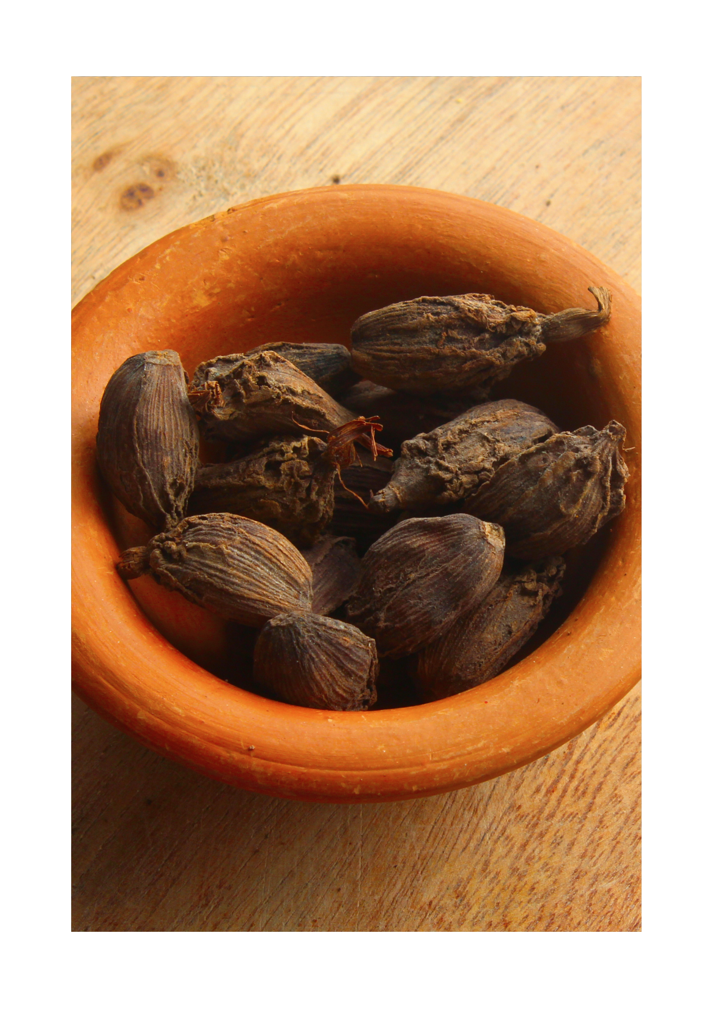 Black Cardamom or Badi Elaichi, is a royal spice indeed. Cardamom is a spice made from the seed pods of various plants in the ginger family. The pods contain a number of seeds, but the entire cardamom pod can be used whole or ground. It is an essential in the Indian Garam Masala for has immense taste and aroma apart from its medicinal benefits