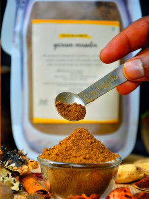 - OFG's Garam Masala is an aromatic blend of 18 ancient spices, each handpicked, hand-sorted, sun-dried, hand pound and then ground to perfection. Its proportions are picked up from our families Heirloom recipe. We use many ancient spices like Stone Flower, Nutmeg, Mace etc which are no longer used in everyday cooking.