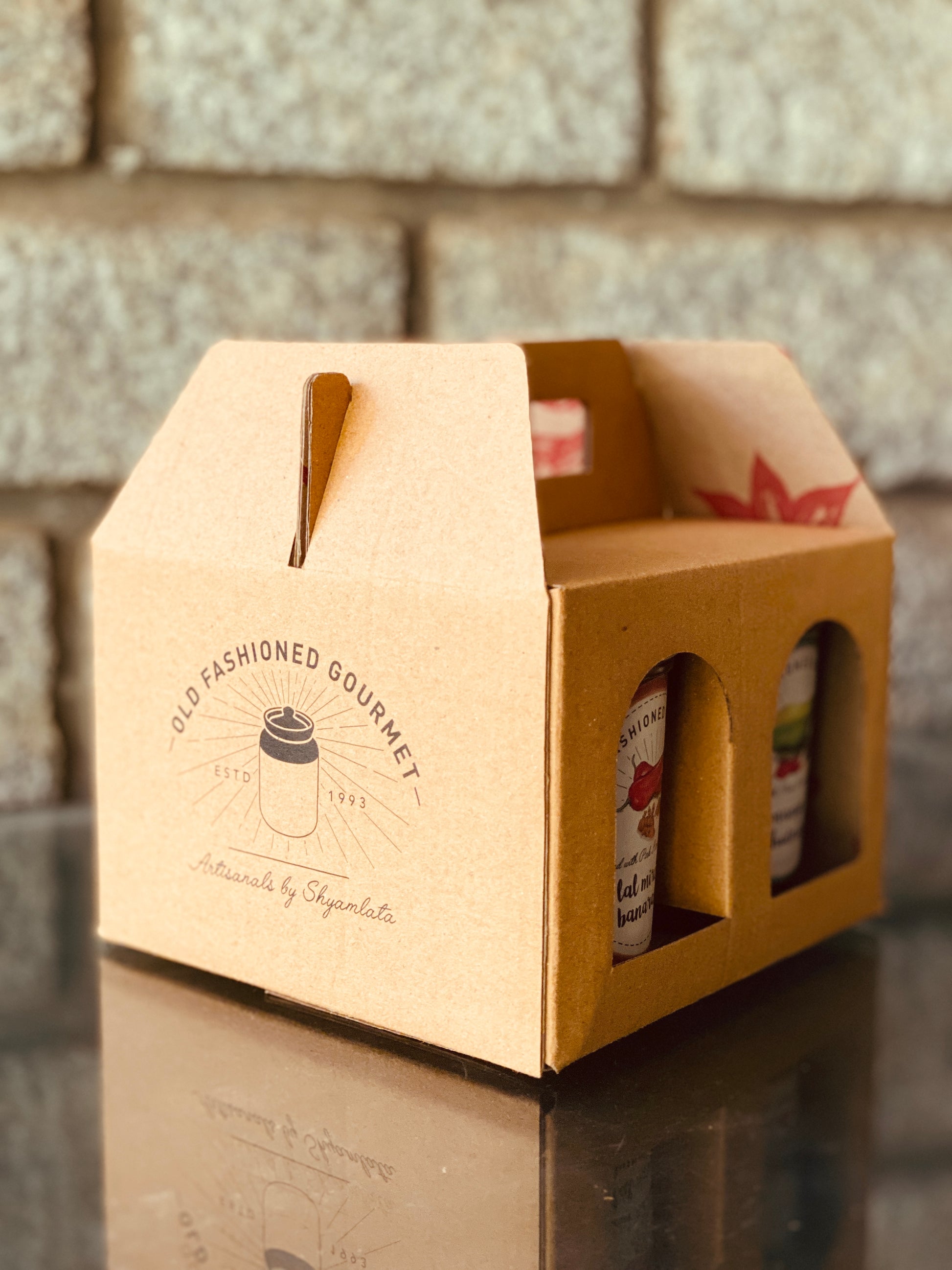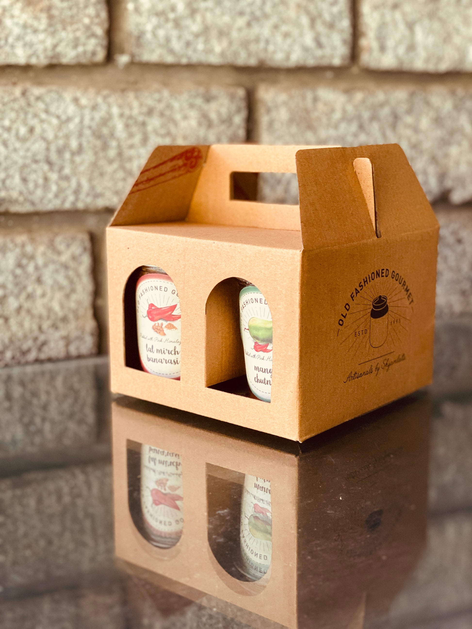 Here is a box for 4 of jars, for you to gift your favourite four pickles and relishes from Old Fashioned Gourmet.